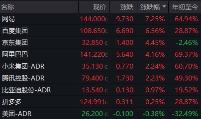 中国概念股成为市场焦点,纳斯达克中国金龙指数大涨2.12%,创近半年新高。个股表现亮眼:网易涨逾7%,百度集团涨超6%,京东集团和阿里巴巴均涨逾4%,小鹏汽车、蔚来等新能源车企涨超3%。
